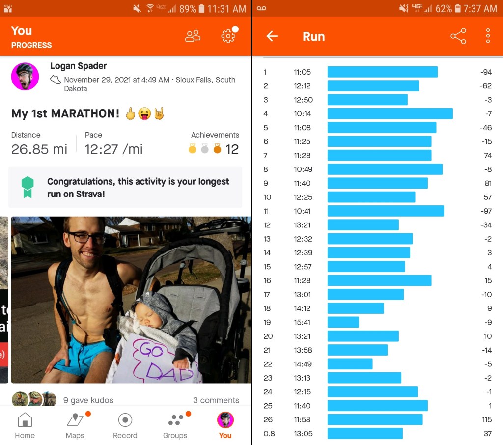 So how did it go!? HORRIBLE. It was a nightmare. I stopped to urinate like 85 times and around mile 18 my body decided that it no longer wanted to run. I pushed, I pushed, and I pushed some more until I realized that if I didn’t pick up the pace I was gonna be running all night. But I made it. A bit of an injured foot and some knee pain and I can honestly say that I can’t fathom ever doing that to my body again.