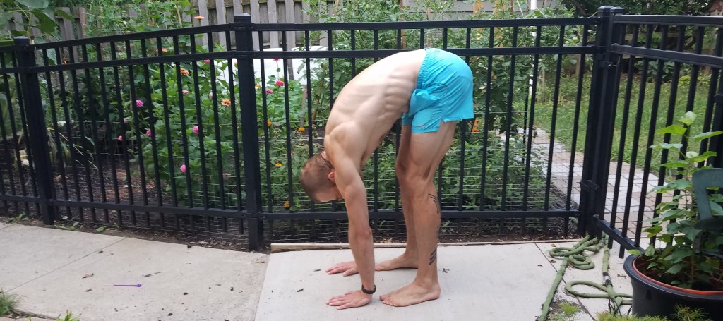 Also, forward fold palms on the floor!!! My knees felt 100% locked back but doesn’t look like it in this photo. Hmmmm….