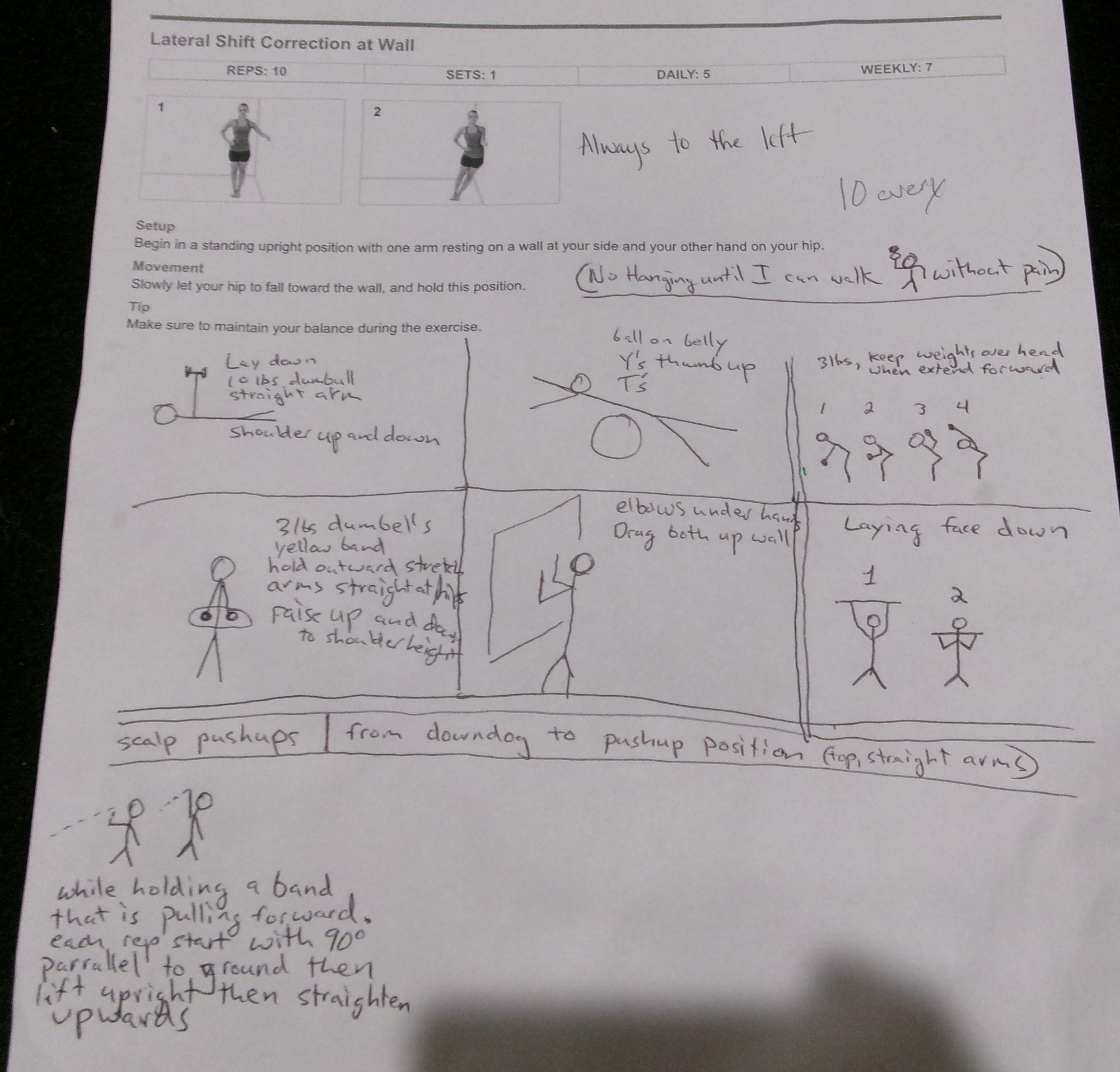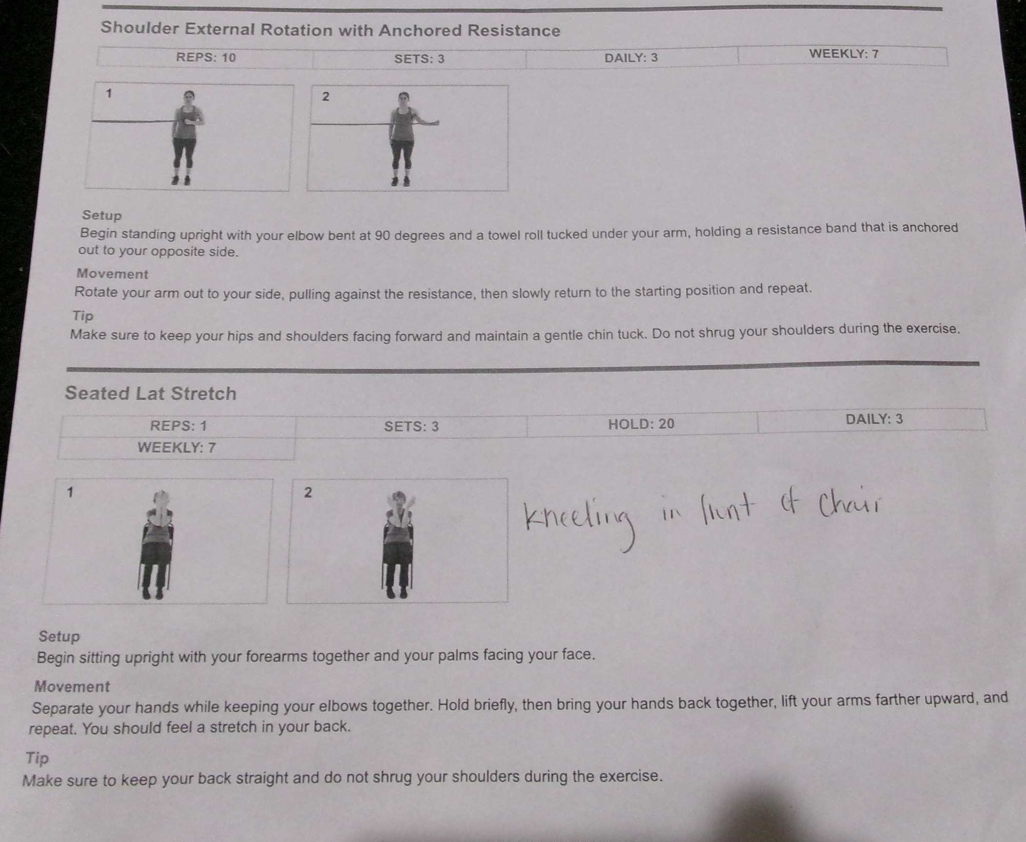 1. stretched shoulder press with 20 lbs (weighted once shoulder heals)