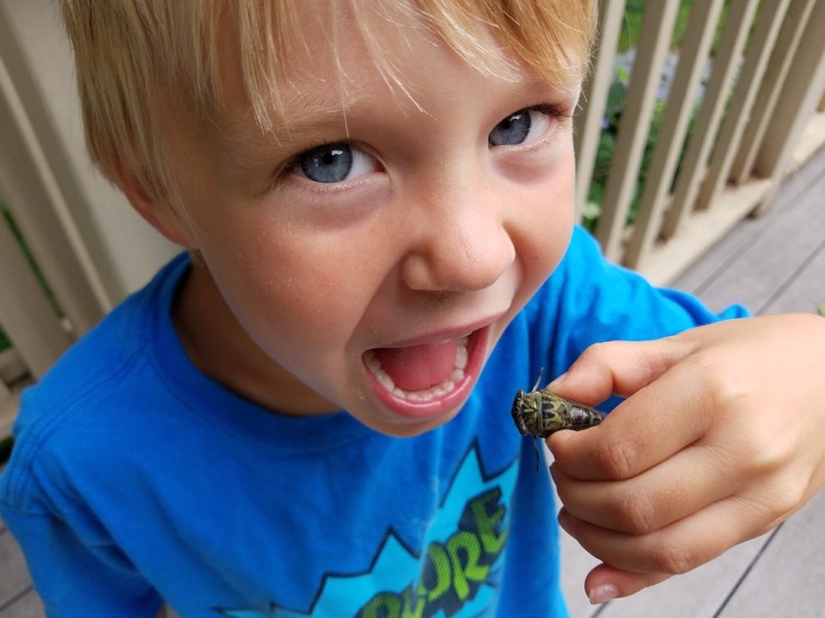 Cicada – Tastes like chicken. Boil for 4 minutes then fry in oil. Use in recipes that call for chicken. Haven’t figured out an efficient way to gather them but find them all over in town while hiking. June-Sept?