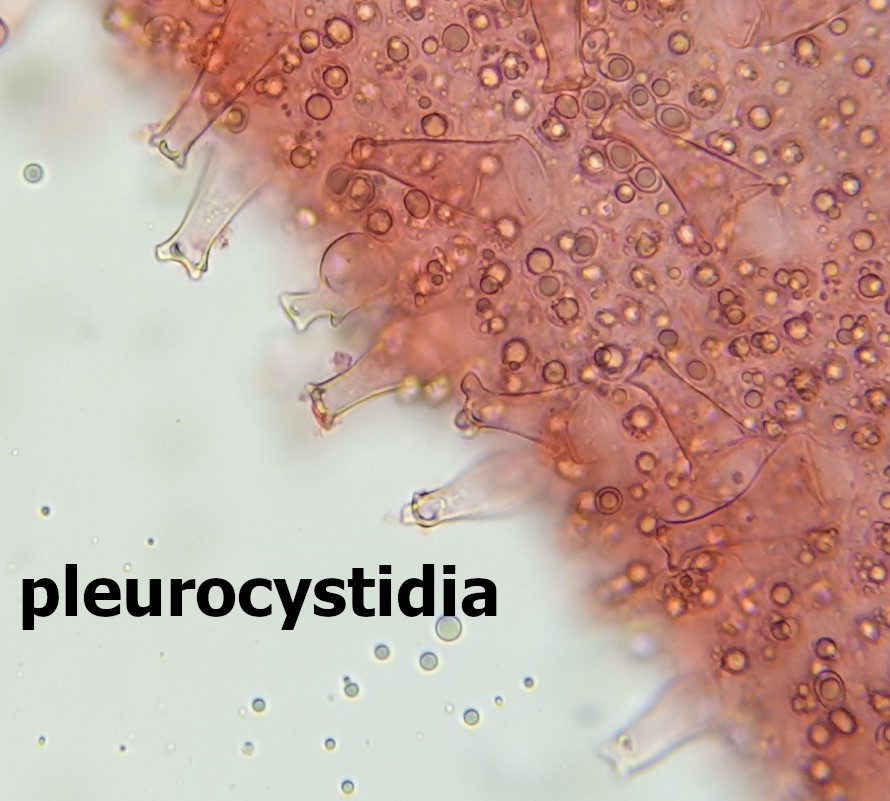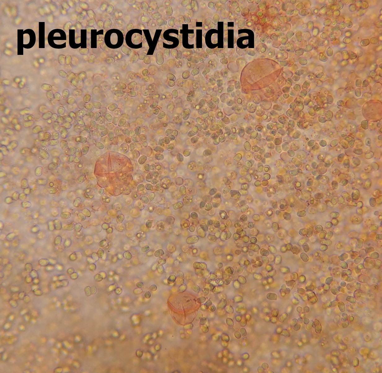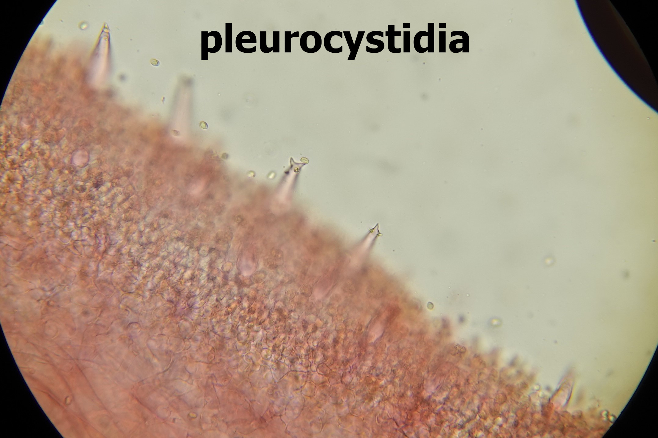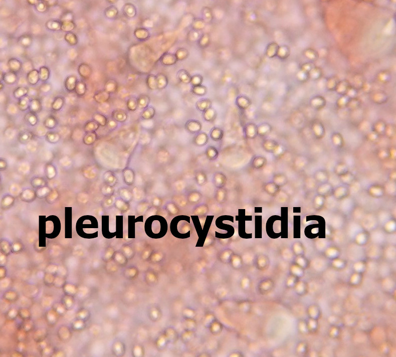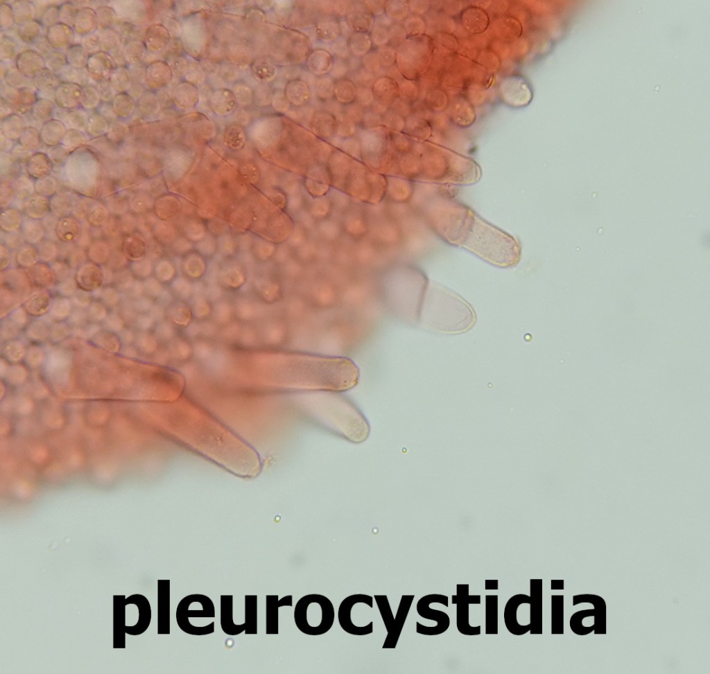 - P. hongoi has pleurocystidia with bifid apex (double split?). P. cervinus is “entire”. (Justo 2014, 17)