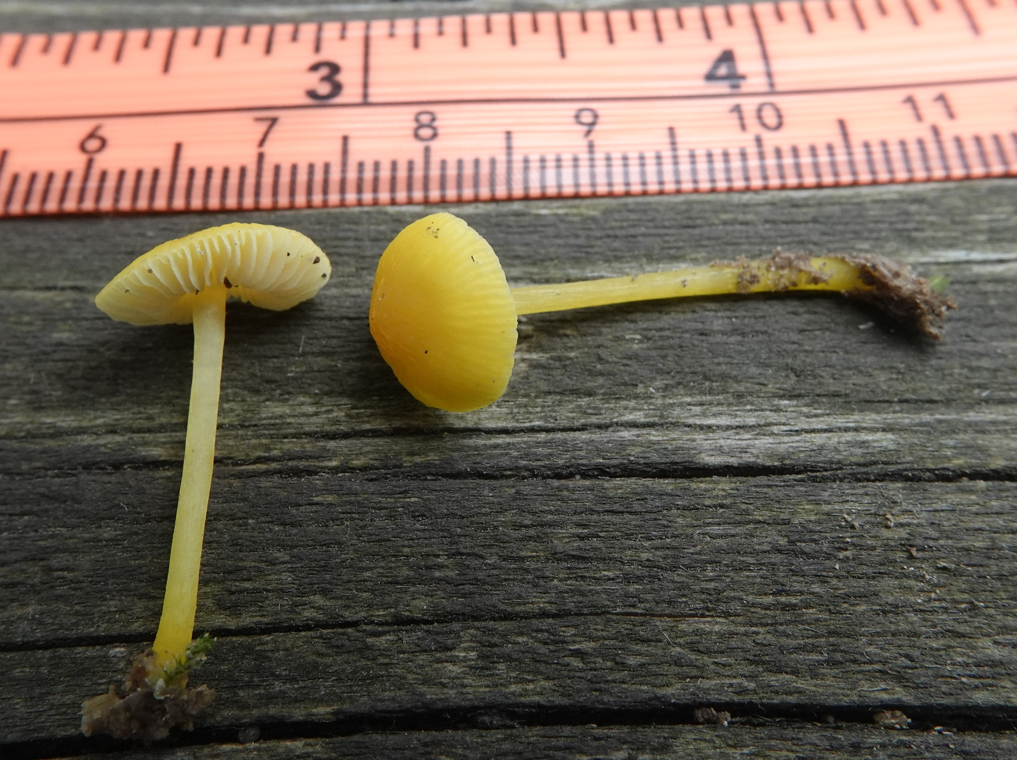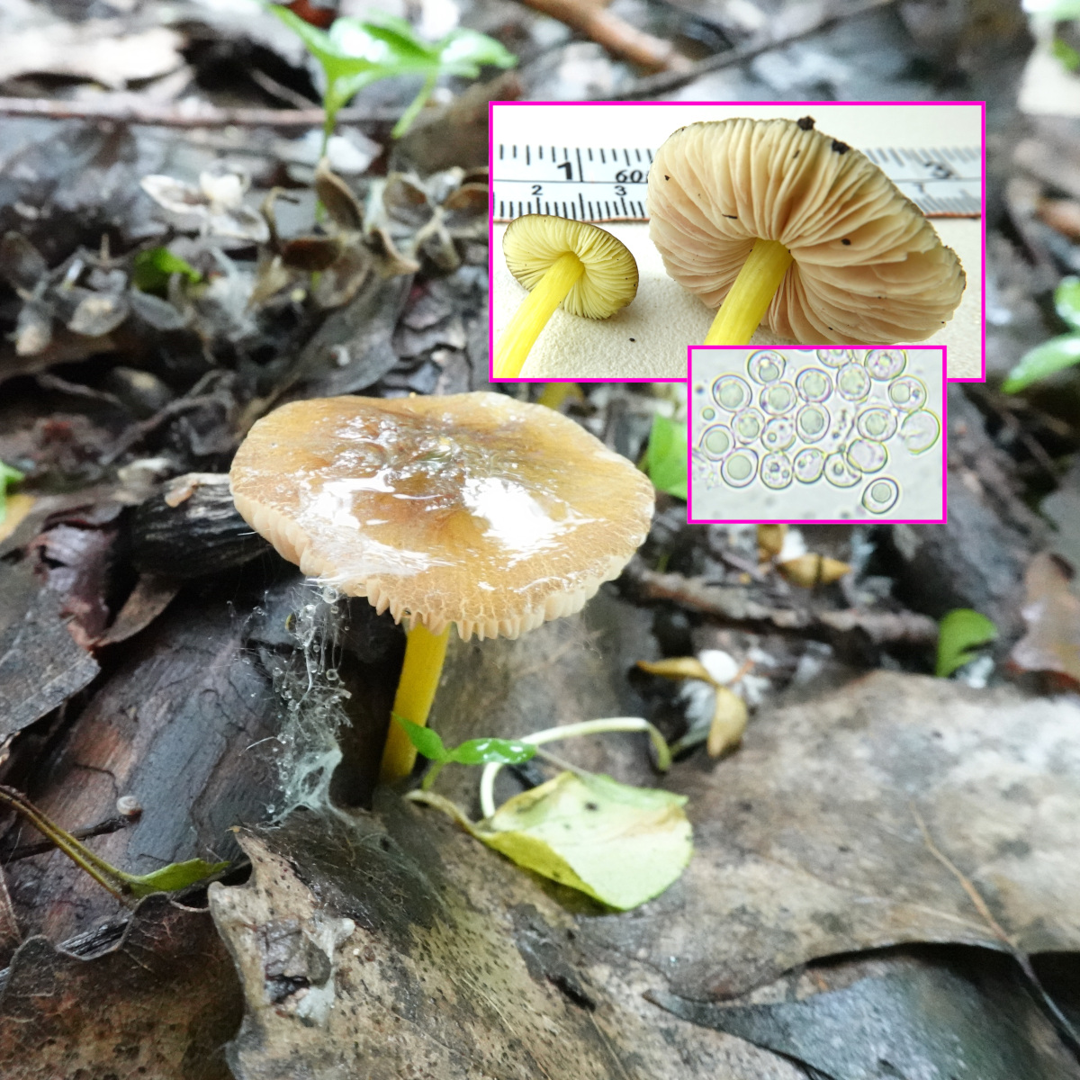 Similar bright yellow colors to P. chrysophlebius but the cap is a brownish color.